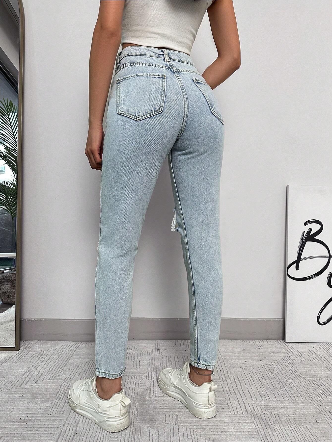 Die markanten Risse bei den Knien verleihen der Jeans einen eleganten Touch, der deinem Look das gewisse Etwas verleiht. Egal, ob du sie mit einem lässigen T-Shirt oder einem schicken Top kombinierst, die Risse machen diese Jeans zu einem echten Hingucker.