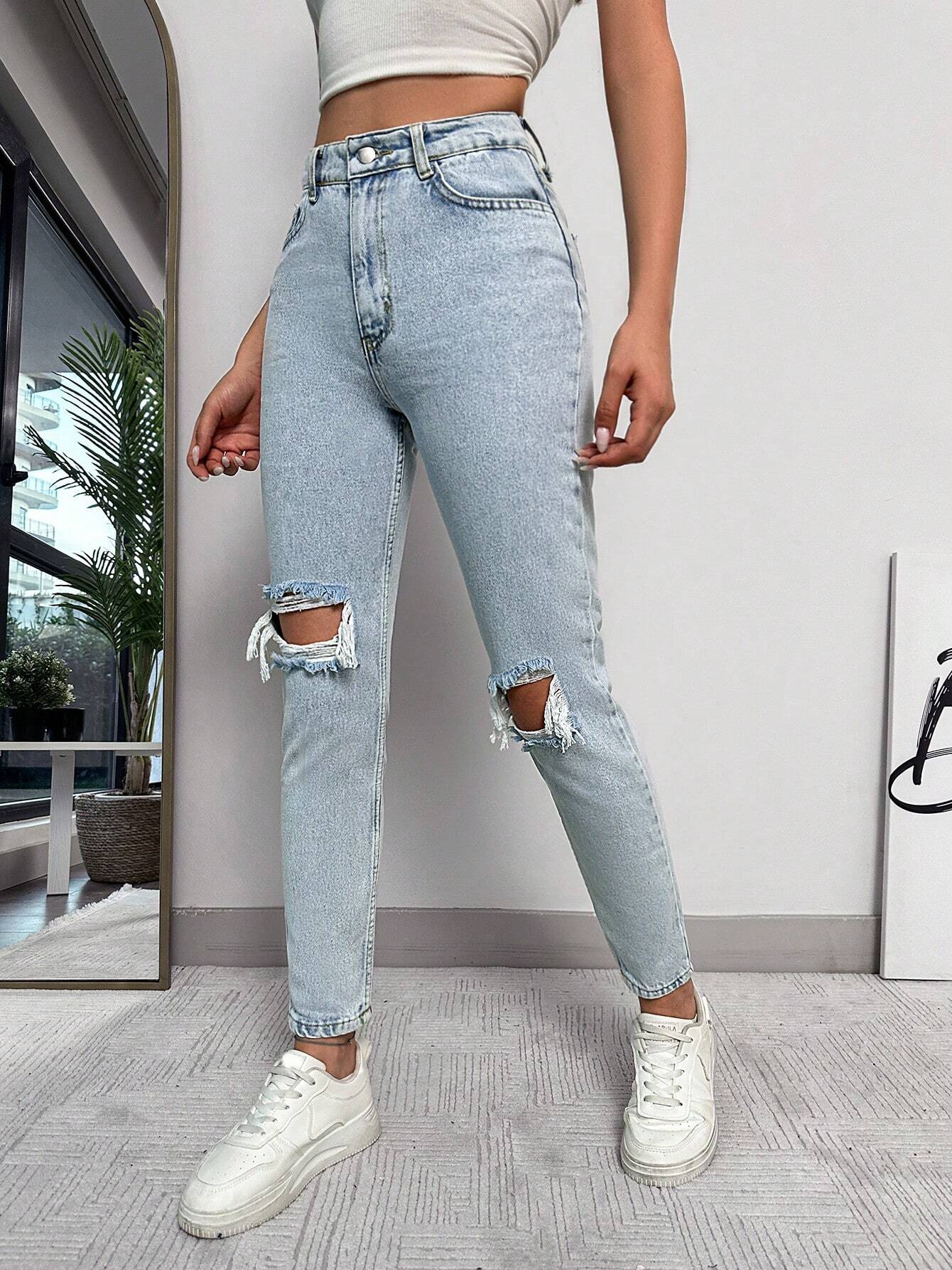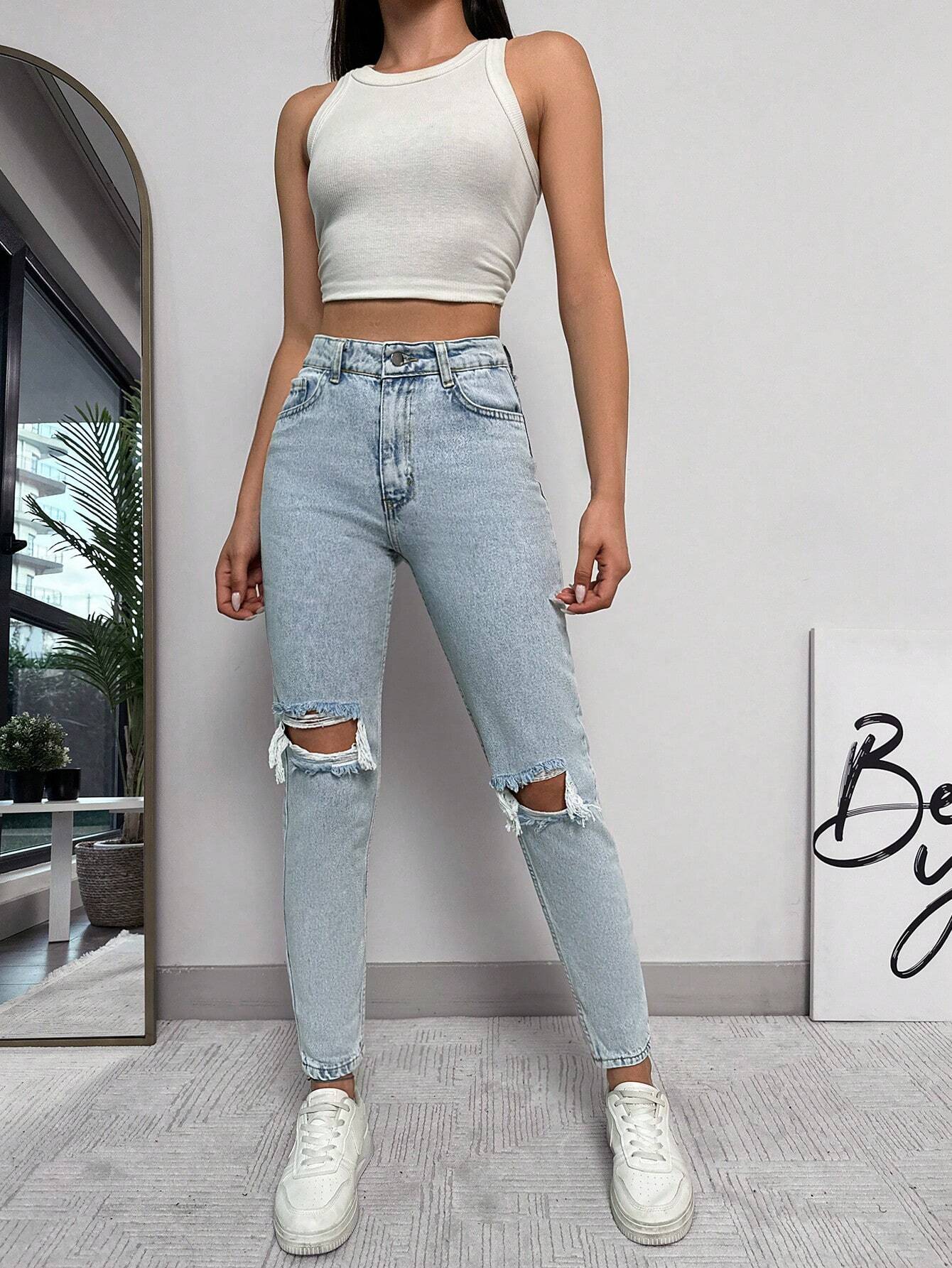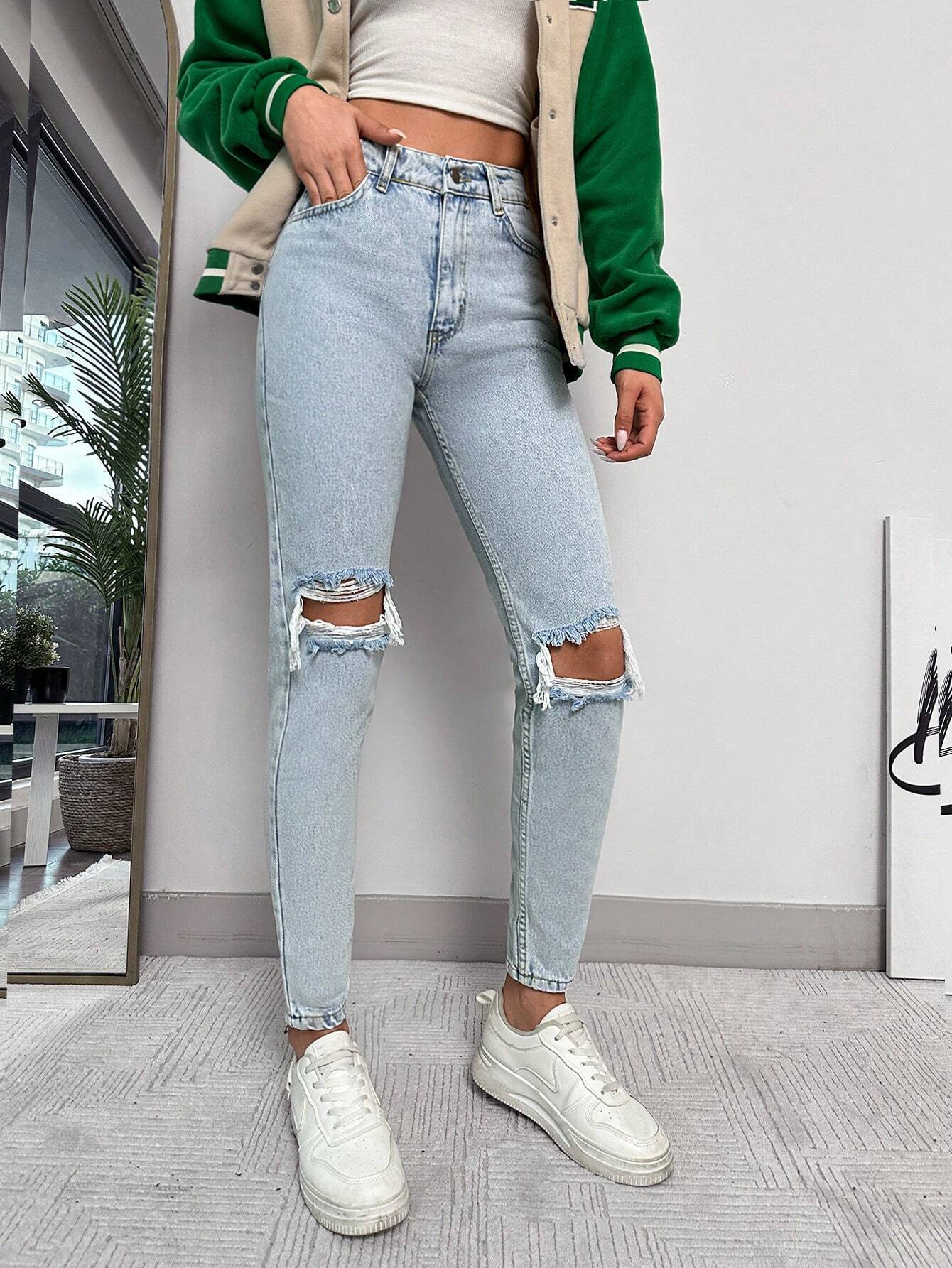 Die auffälligen Risse bei den Knien verleihen der Jeans einen modernen Touch und machen sie zu einem echten Hingucker